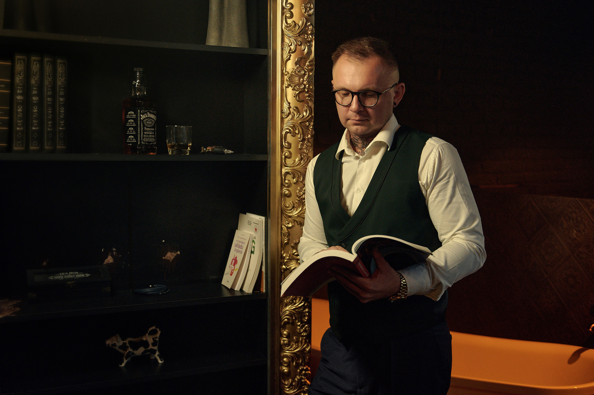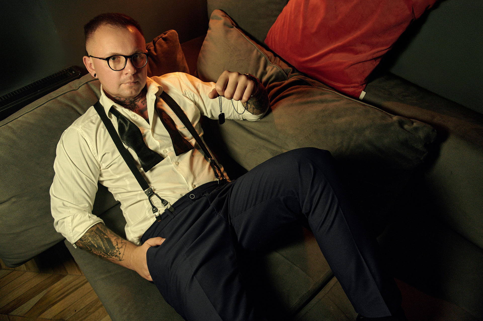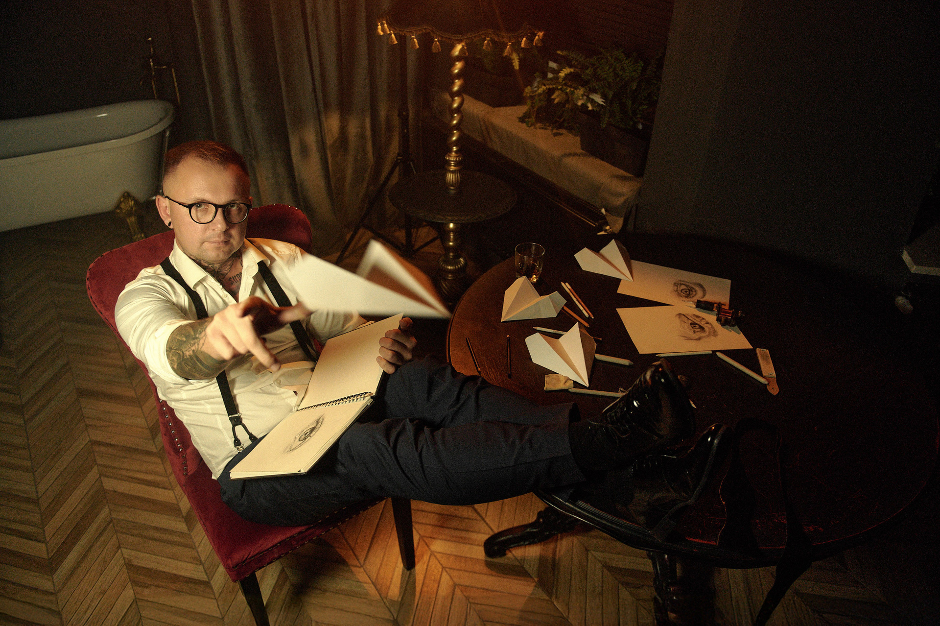 Również Rafał chciał żeby w sesję były wlecione jego zainteresowanie rysowaniem oraz coś z zawodu pielengniarza. Żeby nie robić „jak u wszystkich”, delikatnie dodaliśmy takie detale jak stetoskop czy książki medyczne, jednak postarałem się zrobić tak, żeby nie dominowały one w kadrze. Oraz zrobiliśmy kilka bardziej klasycznych zdjęć portretowych w ubraniach medycznych.